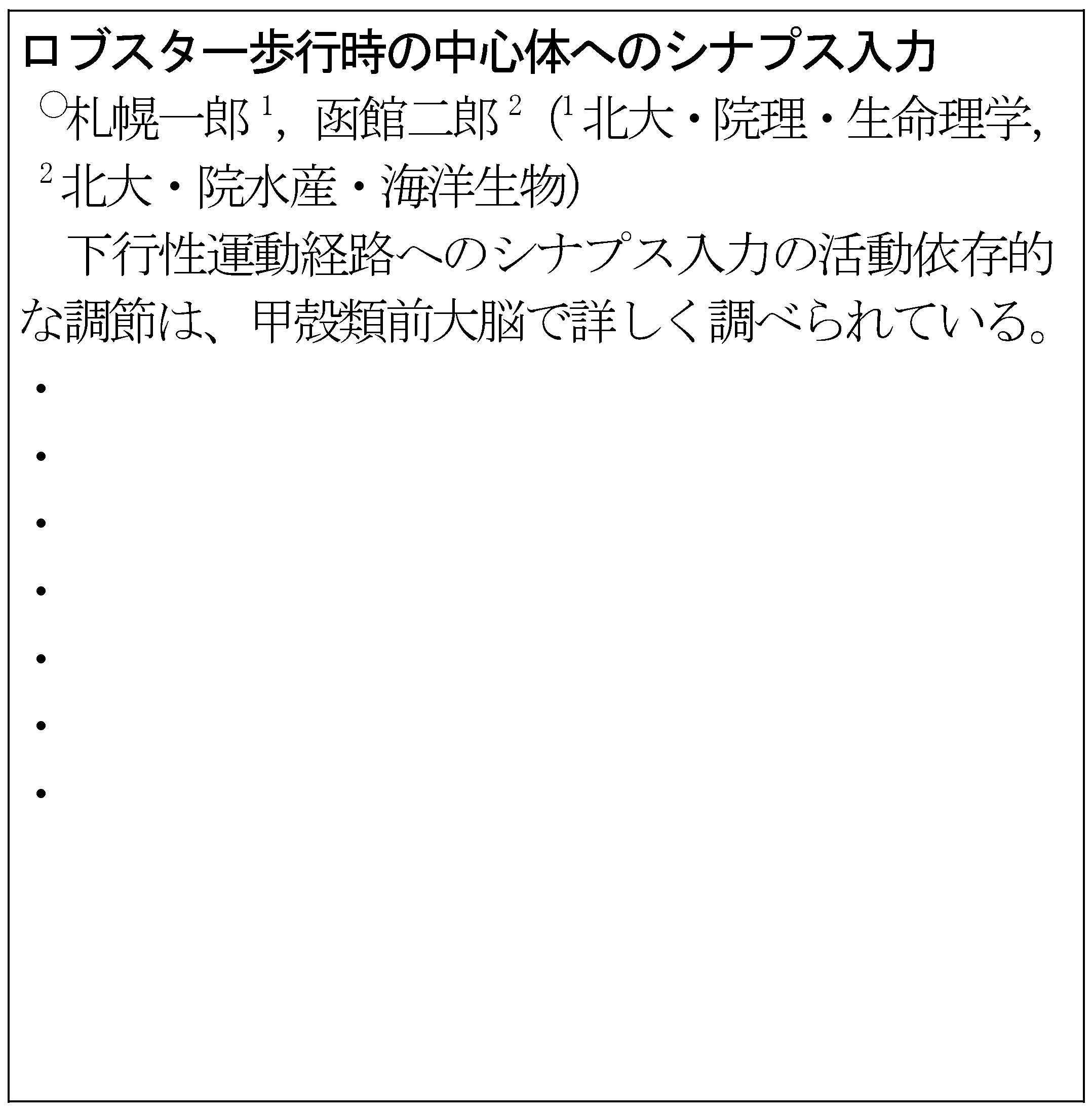 動物が示す逃避行動や配偶行動、学習行動などの多彩な行動は脳によって制御されている。昆虫においては、脳の最高次中枢であるキノコ体はこれらの行動の制御に重要な役割を果たしていると考えられている。今回は、ワモンゴキブリとミツバチを使った電気生理学および解剖学的知見に基づいて、私が提唱しているキノコ体を中心とした昆虫の脳の運動制御に関する基本設計を紹介し、さらに哺乳動物の脳と比較する予定である。(本講演は2006年比較生理生化学会浜松大会での吉田奨励賞受賞者講演を基に構成しています。大部分が重複していることにご注意ください。)