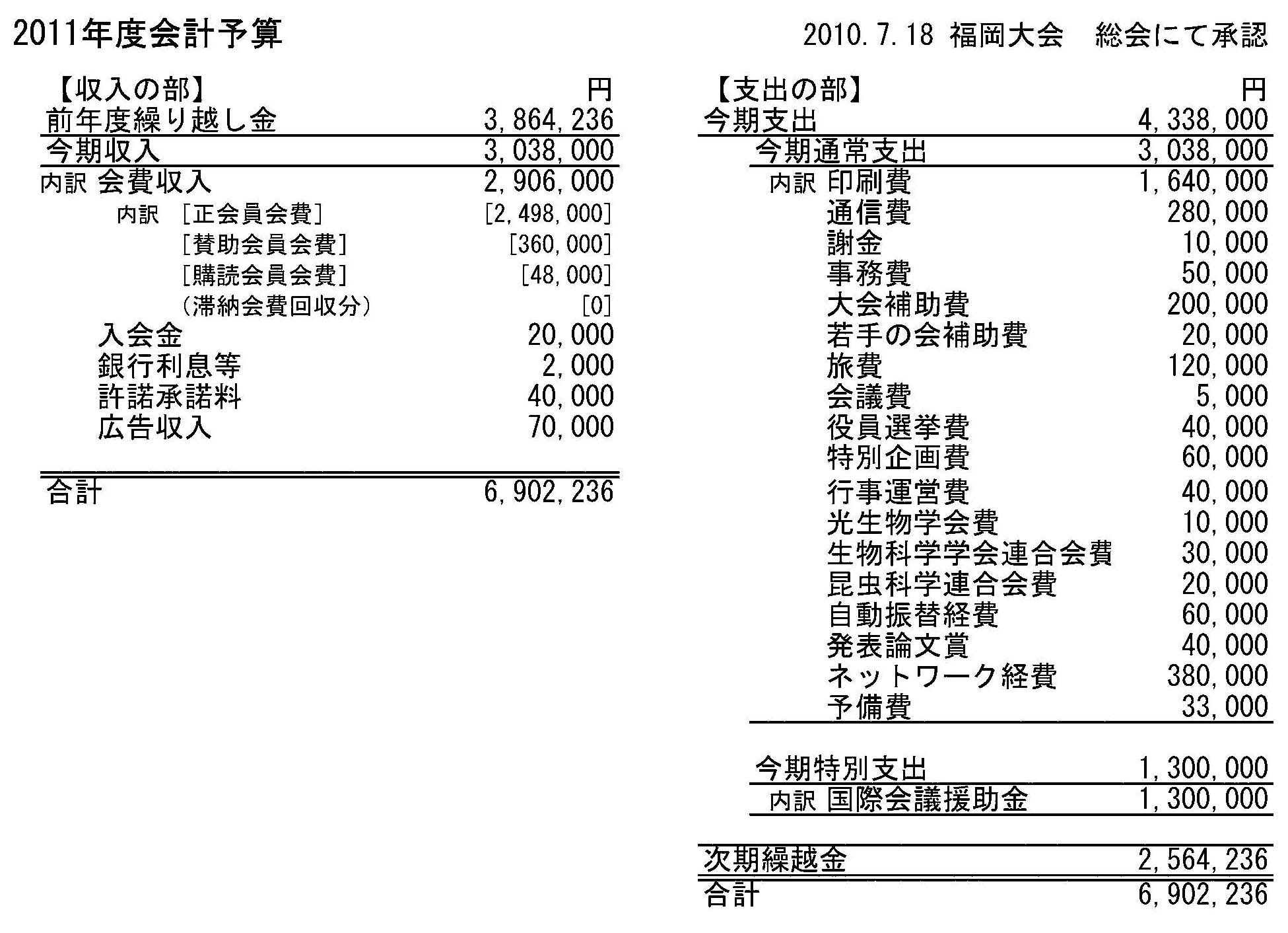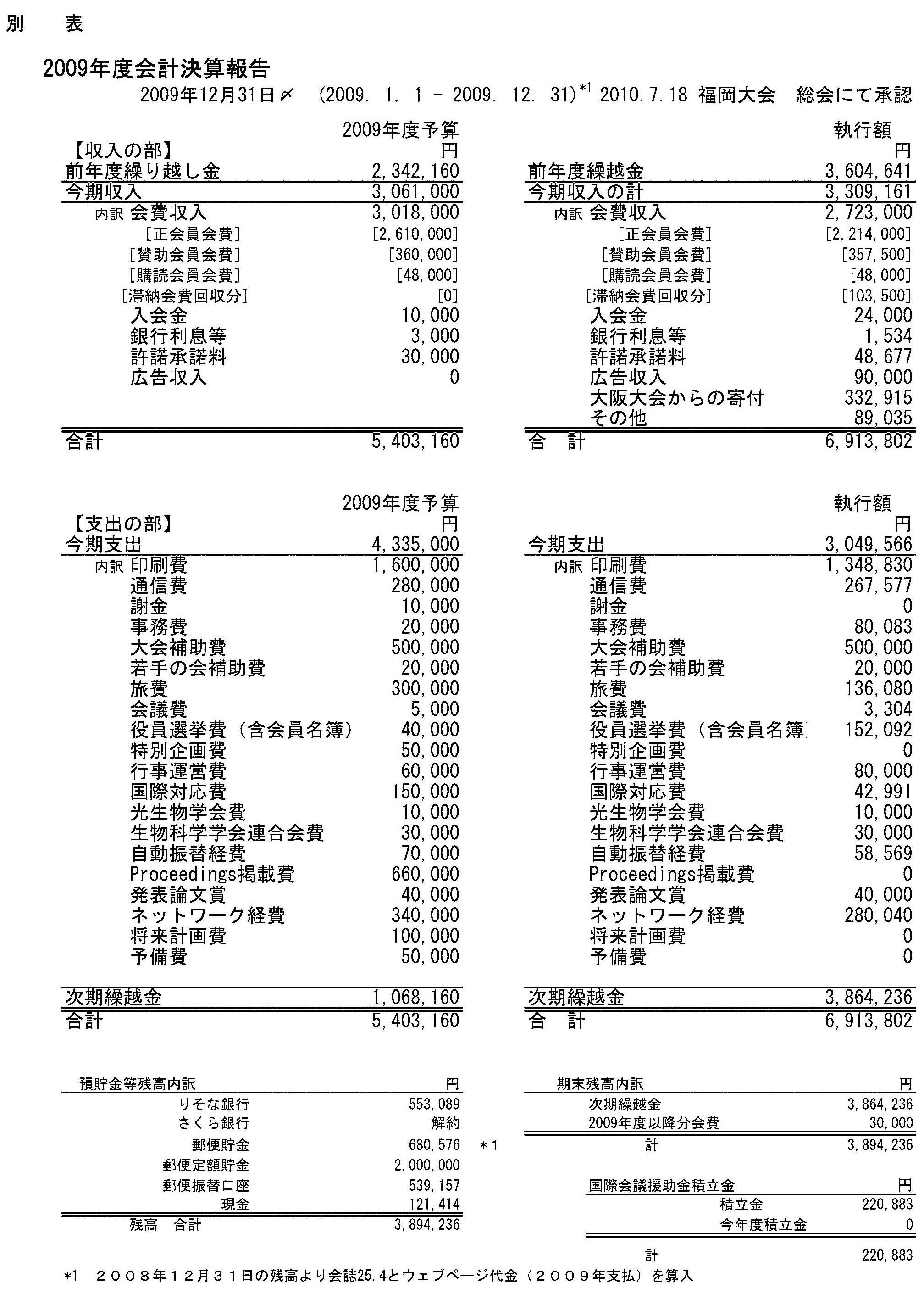 (1) 2010年度会計決算(別表)報告(山脇幹事)