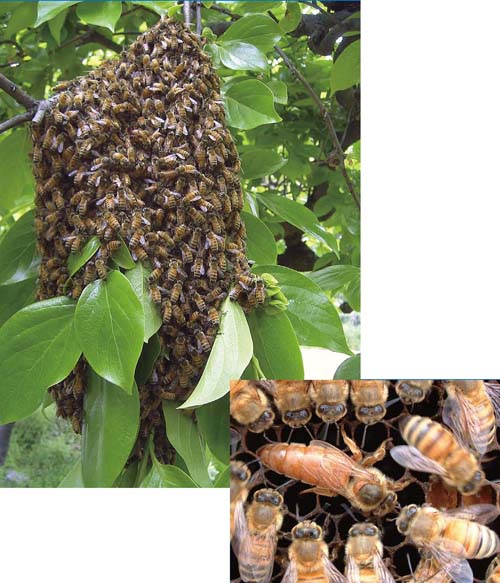 巣から飛び出した働き蜂と母女王は,まず母コロニー近くに分蜂蜂球を形成し,新しい巣を建築するのに適した場所の情報を集める。